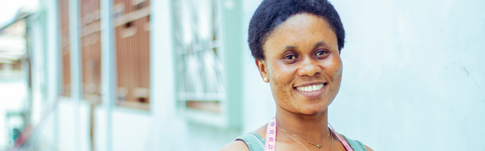 Racheal is a tailor and a disability justice activist from Ghana. She is one of the young deaf women who have received skills training and support under the Ghana National Association for the Deaf (GNAD), Women’s Wing. Growing up, Racheal always admired fashion and design, and this inspired her to pursue tailoring.